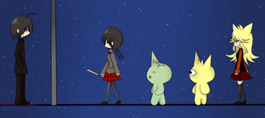 Earth History: From a young age, Lua saw the world being colourless in her eyes. Void of any feelings, she lived her life as if it were a chore. It wasn't until she was adopted by a caring couple that she finally saw the world a bit differently. It wasn't until she met two special people who would eventually turn her life around. With their help, Lua learnt that the world around her wasn't so cruel after all. Without the her family and her best friends, she wouldn't be the bright person she is today. Currently Lua is a model for a fashion magazine. She also has a hobby of sword fighting with her adoptive grandfather whenever she visits him.