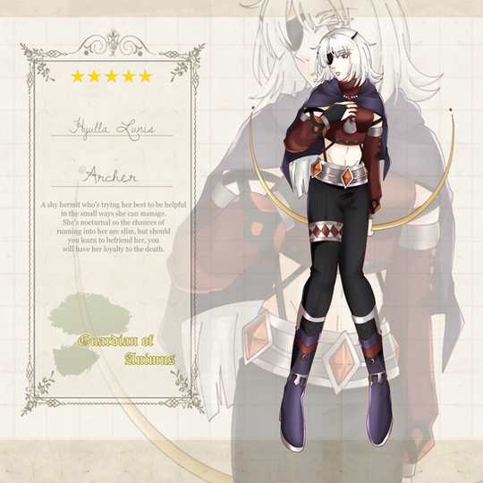 When Lua woke up, she didn't know where she was nor remember her past memories. All that she knew was her first name and a bit of what her body seemed to remember as a swordswoman. Walking around the forest in hopes of finding civilization, Lua soon found herself in front of a village. The villagers were very cautious towards Lua, but soon warmed up to her, seeing that she wasn't posing any threats towards the village. During her stay, Lua learnt that she was in a world called Aesthia and the village was founded by the "Guardians". With no memories of where she was originally from, Lua decided to stay and live in the village.