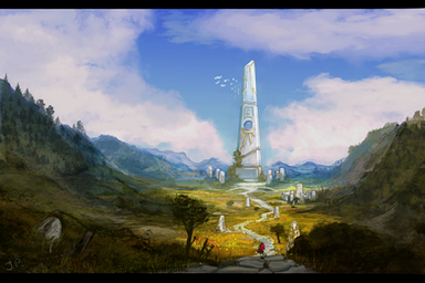 This is really cool. It just begs someone to tell the story behind all of those statues and structures. I like how the piece makes me want to know the history of the place!