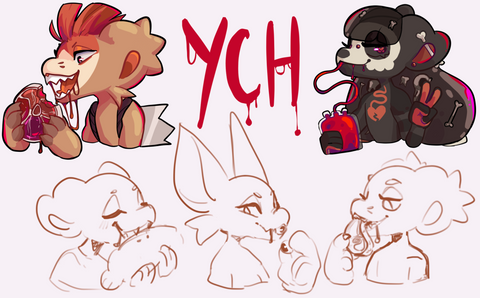 Meat or blood?, werewolf or vampire? ('meat' fur will look more scraggly looking because werewolf .>. )Another halloween YCH .>.