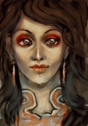 i love the color scheme, her eyes are beautiful and piercing, lovely picture, fantastic, pretty much...ya, it's great...