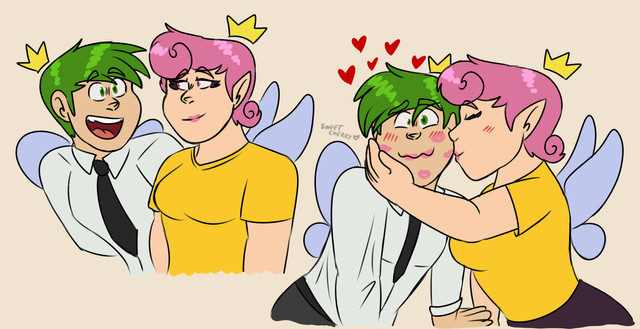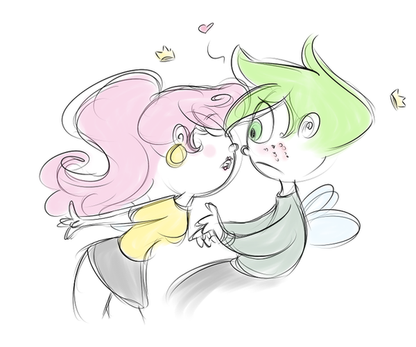 This is so cute. (: Do you mind if I color the one where Wanda's kissing Cosmo's cheek?
