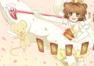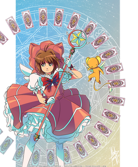 Fantastic art piece . I love the colors, how feminine Sakura looks, the Sakura Cards and their perfect detail, and the vintage shading and use of the flowers. ^_^ One of my favorite animes as well an you captured it stunningly.