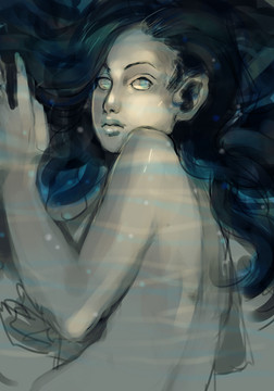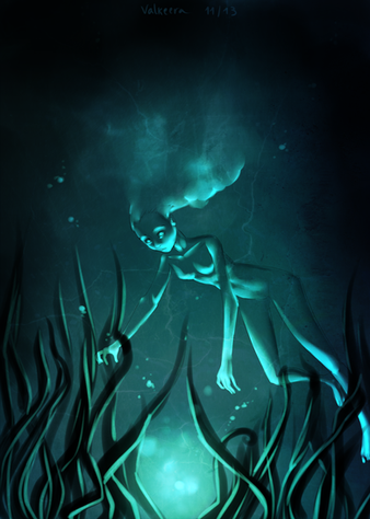 Wait wut wat the colouring is spectacular! Alot of nice values and the figure seems to fade perfectly into the water (which has nice ripples too! X) ) and the waterlilies are beautiful, also good contrasts, I just love it! whee