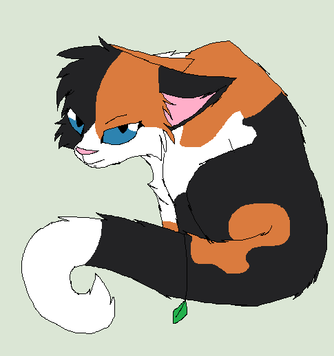 Ah so here is one of the Books most beloved she-cats. Spottedleaf.I thought she was sweet and always pictures he quite beautiful, however she did die quite young and quite early in the series. Which was quite sad. However after reading the second arc as well as reading some other information, she seemed quite creepy and obsessed with Firestar XD I mean, I understand you had a thing for him, and he was cute and all, and helping protect him can be good and well. But seriously lady, let him live. But regardless, I decided to doodle another MSPaint warrior cat and for some reason Spottedleaf seemed to come to mind. I quite like how she turned out. c: