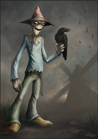 Haha, I really do like what you've come up with and the coloring is great, and the scarecrow, haha very umm I want to say lovely but it has it's mouth stitched shut! What do I say to that!? XD
