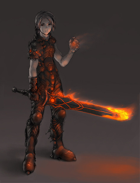 the background is purely amazing btw, i love it it's so beautiful. <3 i love those vivid fiery sunsets.. and the entire background makes it seems so realistic too, although i think the moon would look more striking if it were a bit bigger or higher than it's current position. :0