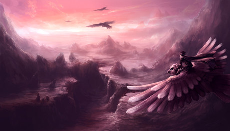 Hehe, the robo crow sure does give a different effect to the image. Definitely freaks me out a bit. :3 Nice colors, love the sky, dusk?