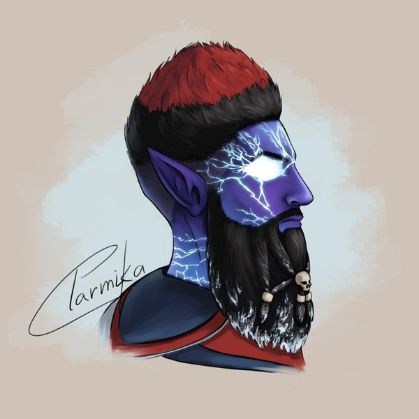 Ooo definitivamente no te hubiese imaginado dibujando un personaje así (por lo general todos tus personajes son super elegantes y estilosos jaja), pero te quedó genial! Me lo imagino como un personaje de alguna novela épica y fantástica, al estilo de tolkien! Y la iluminación roja me hace pensar que esta en frente de unas brasas, muy buena ambientación
