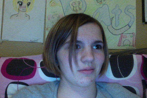 I'm so nervous about posting this, but I have some courage, so better now than never.This is me. A 5 foot 7 inch tall, 14 year old girl. My hair is really messy, and my mom predicts it'll be curly like hers. I like to chill in pj's and hoodies, like in the picture, when I'm at home or when I'm feeling lazy. I wear glasses, everyone tries them on at some point and comments about how blind I am, which I find funny. They also always spell my name wrong, which also amuses me. I tend to giggle and blush a lot, but I'm also quiet and like to keep to myself.