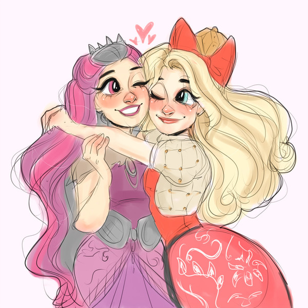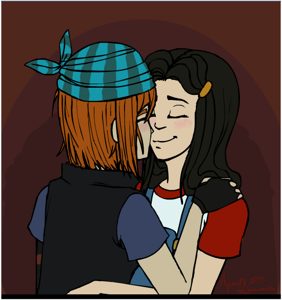 A redraw of a scene where Apple hugs Raven - as seen through 'shipping goggles. (which are permanently welded to my face)