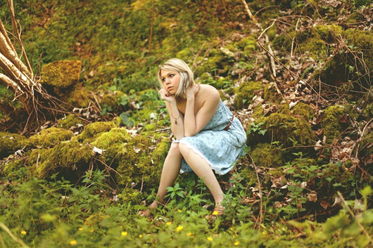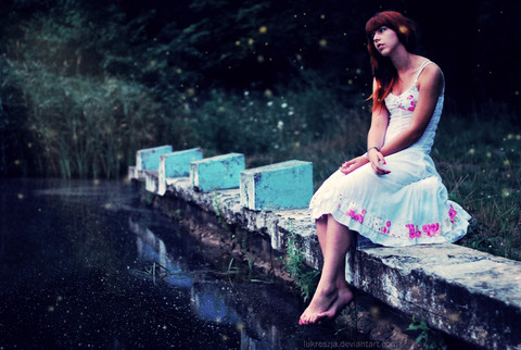 She looks like a nostalgic girl, maybe she broke up with her boyfriend and thinks about the good moments, sadly