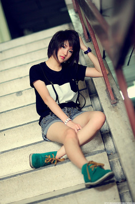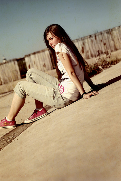 I love this! The weathered stairs with the weeds are a great locale. Pose & outfit are superb as well.
