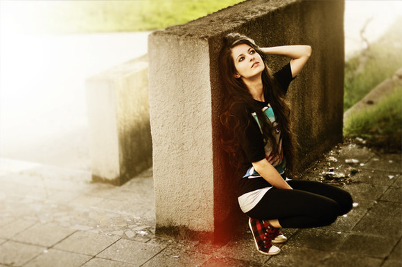 This one is really up to my taste! Nice geometry, that you can't see exactly from the preview, including your hands position, your hair waves and your face profile. Nice shot overall. It has it's purpose