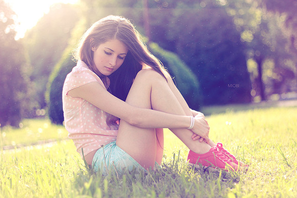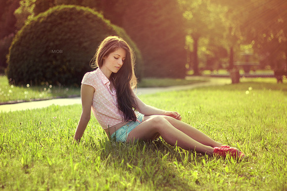 Pretty girl with a pretty smile and pretty feet in a pretty pose. There's a lot of pretty going around in this picture.