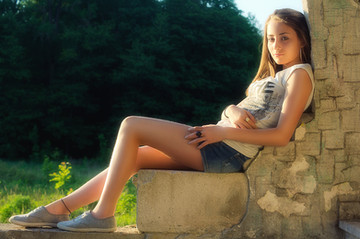 The way she's sitting, it looks like it'd be pretty easy to lean down and pick her up princess-style, with one arm under her knees and the other around her waist. I wonder if she's the kind of girl who'd be amused by getting cradled and carried around like that.