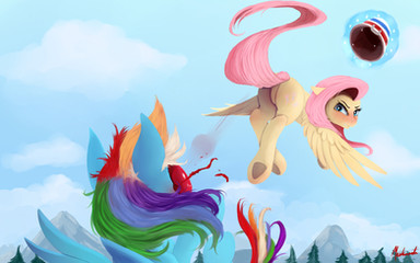 The expressions on their faces and the way Dash is riding Flutters really makes this a great pic