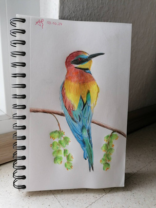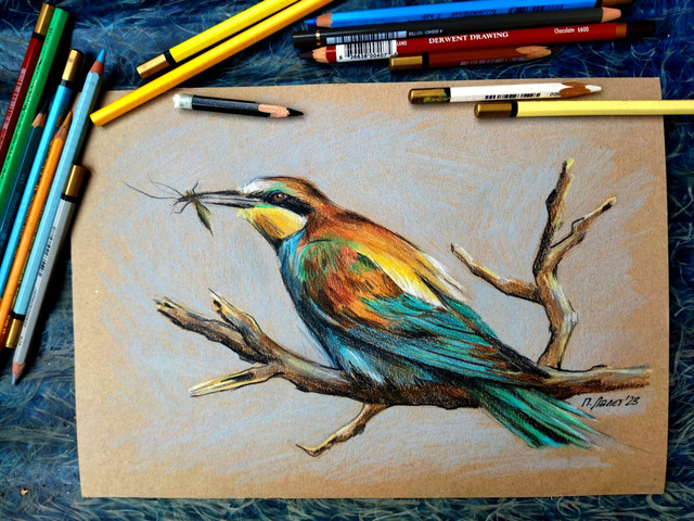 #bird #coloredpencil #traditionalart #pencildrawing #animal #animaldrawing #animalportrait #beeeater #flower #nature #realism #wildlifeart