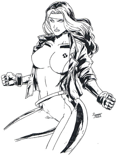 What can I really say? Rogue is HOT! *L* This was a pic that was for a crossover of the X-men and DBZ. I never got around to inking the background. But I love Rogue in this pic *growl* heheRelated content
