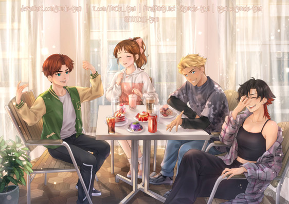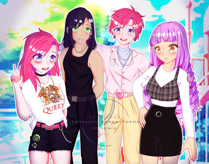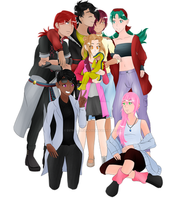 Birthday art for my friend Kotohiime of our OCs in our Winx AU. Zoom in for some hints about the ships lol