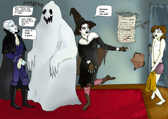 Lol, I would love too, but so far I can only draw 2D people, I can barely draw poses or facial expressions, and it takes me forever to draw just one person, much less three people with furniture and stuff. O_o