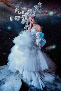 Dress, headdress, photographer, edit: Silbernadelcouture