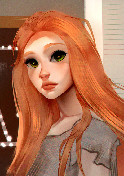 This is so cute and so very happy! Her face is so sweet, I love the limited range of colors, the blue really makes her eyes pop. I'm not sure it was intended, but this makes me want to go play Harvest Moon.