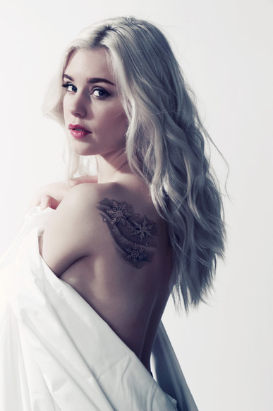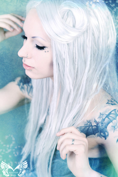 Beautiful portrait. I love the use of the wig and you look stunning in silver hair. I'm familiar with the inspiration and you look spot on, in my opinion, though yes, there is a little more sensation of "innocence" that the original art has. However, I like to think that this is a more mature version of her, perhaps. I think you should play around with the usage of the wig a little bit, perhaps seeing it a more elegant or even "witch-like" persona. In total, I love it, though and would implore for you to test out more portrait art (or more full bodied pictures) like this.