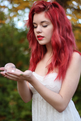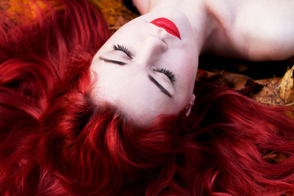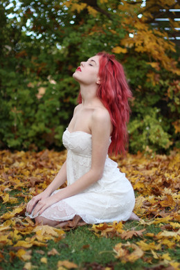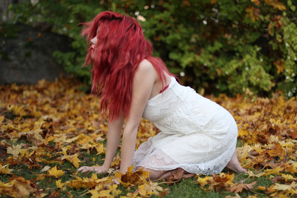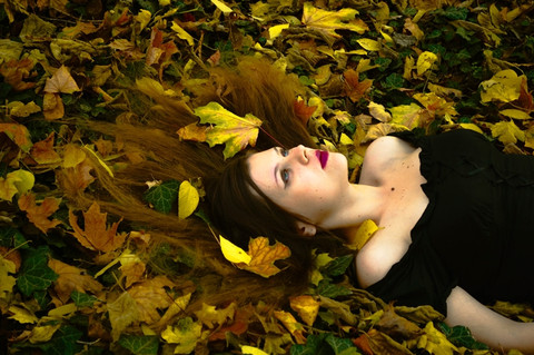 The colours are lovely, her hair contrasts so nicely with the fallen leaves. I love her pale skin with the tinted red, very beautiful