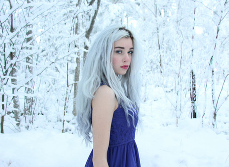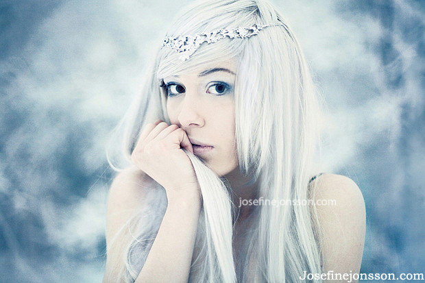 reminds me of Elsa from frozen. The snowflake tattoo feeds that idea as well ^^.