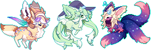 I was sitting on these (as well as the non elniny chibis) wondering if people would hate me if I spammed them with all the commissions and pixels I've been making. So I mashed the like species together (and of course there are three elnins <3 BAH HA HA), to hopefully curb some of the uploads from me. Thanks for looking!Elnins are