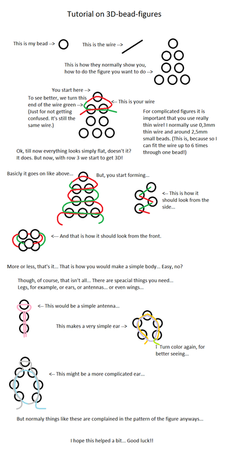 Top hand corner, under the wire explination... that's how the head starts... you go on like this, taking the pearls like in the original pattern. This Tutorial is just to explain how you do certain steps... that is from: How to start, over how to do the antennas and the two spine-possibilities, till finally, how to put in the wires for the legs and wings...