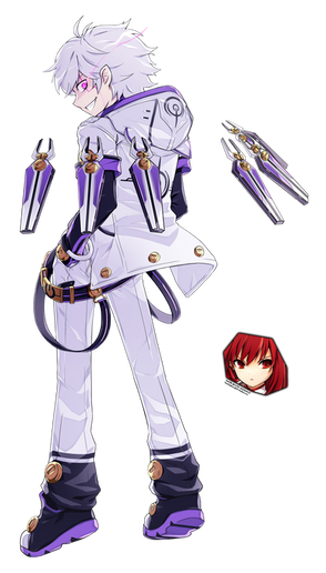 Based off the design for Add from Elsword. Accelerator's Ruler form possesses two Noble Phantasms derived from his abilities.Wings of the Awoken: Based off his White and Black Wing forms.. Accelerator can conjure up wings that instantly molt into black feathers which fly around viciously. Each feather, when touched, causes all the vectors on the touched object to instantly implode into one point.. creating a black hole that Accelerator can shut off at will. Because it can only make existing vectors do this instead of just creating nonexisting vectors, this Noble Phantasm's effect can be negated by simply not moving as the feather touches you.. and then moving when it has seized touching you.. by far, this is very difficult however, as their has to be absolutely no movement, and the slightest movement like breathing can create vectors enough to do internal damage with a living thing.