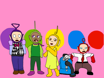 based on a weirdass idea during class, where the futurama characters are infact teletubbies.also, bender wants to burn your shiny metal axe