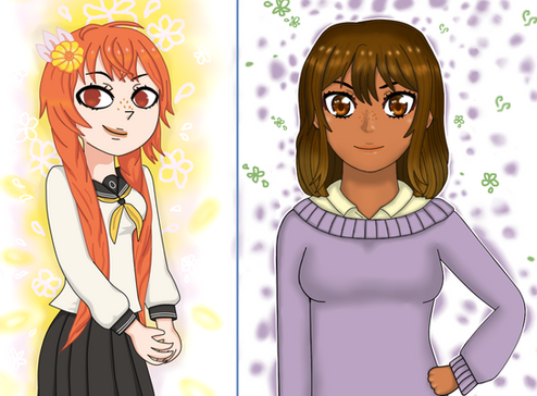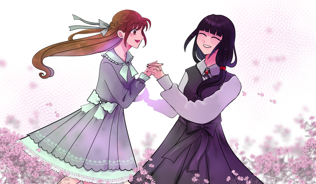 I decided to go with something a bit more simple coloring-wise from me since I was trying out Medibang for the first time and figured for my first drawing, why not draw Kanan and Chika in some dresses I saw while I was out shopping a while back and thought looked cute? I really love how the flowers on their dresses turned out and it was super fun thinking of hairstyles for them! I hope you guys like it!