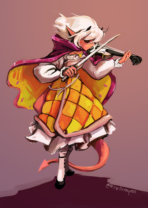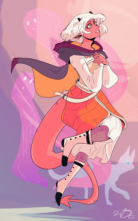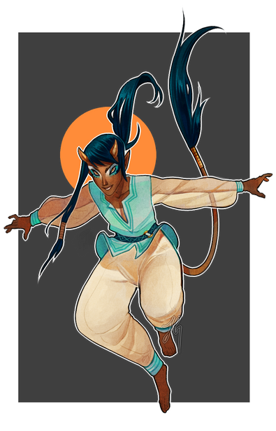 Concept for a Pathfinder Summoner... Riz the tiefling, a street urchin who accidentally acquired an eidolon during a prison break. Now it won't leave her alone and keeps trying to tell her to burn things.Related content