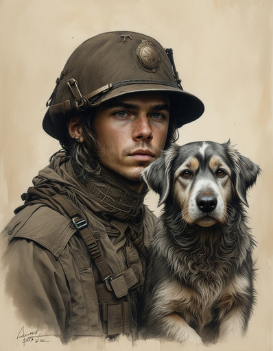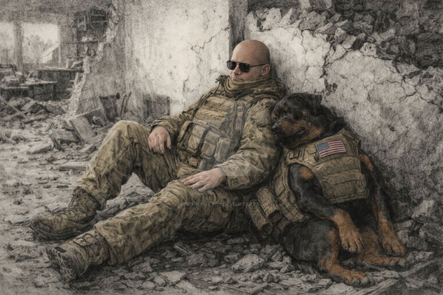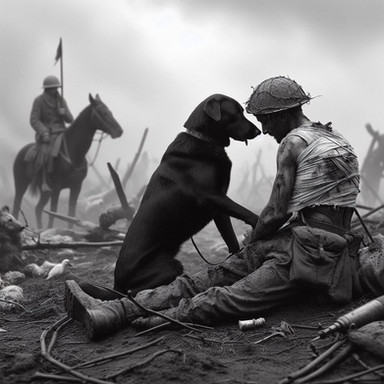 #dog #military #battlefield #blackandwhitephotography #bond #brotherhood #carl #combatzone #foxhole #loyalty #presence #quietmoments #stillness #survival #unspokenlove #worldwari #militaryhistory #rations #humanandanimal #soldieranddog #sharedhardship #warcompanionship #humanityinwar