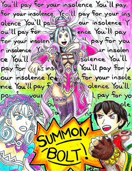 This is based on an event in "Rise of the Shield Hero" where the Spear Hero calls Filo a fat bird. I drew this in a sketch book and then colored it in Manga Studio. I will have this at Momocon and FWA.Related content