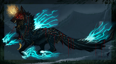 The lovely Viridi20 commissioned me to create this beautiful OC, Torrent! I love the ink splats, the sea-churned fur, the glowing eyes and maw that contrast against theΒ dark colors! Thank you for commissioning me, Viridi!