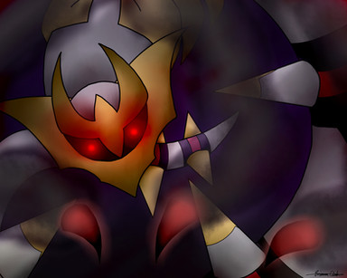 While I was looking up pictures of him, so many people had drawn him angry or attacking something, so I thought I'd change that and kinda make him... well... I wouldn't say sad, but since he would see so many souls pass through the afterlife it might of gotten a bit depressing at some times.