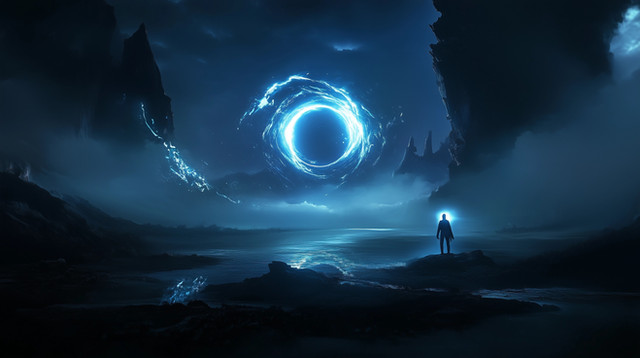 #abstract #alone #atmosphere #bioluminescent #blue #chaos #clock #complex #concept #contemplation #cycle #cyclical #dark #depth #energy #entity #figure #green #light #mystery #organism #physical #shadow #surreal #swirl #time #underwater #unpredictable #vortex #wonder