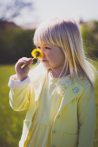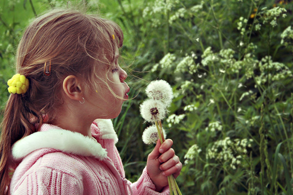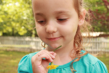 Bernadette poking a dandelion.Related content