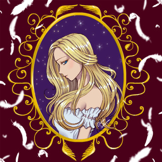 Elle est super belle ta demoiselle *___* J'aime beaucoup son visage de poupées et toute les fines décorations blanche, c'est si délicaaat <33 Même le fond est tout vaporeux *o*