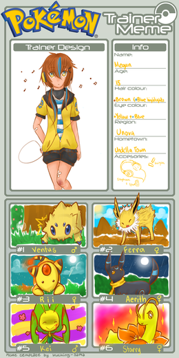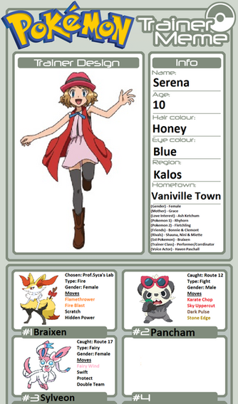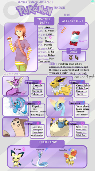 Super sympa ce meme, et ta fiche est nickel *_* ! Siska est adorable, j'aime beaucoup sa signature et les noms de ses pokémons, c'est simple mais chou <3 (D'ailleurs, mon Carapagos s'appelle Abyss dans Pkmn Noir- ) et j'adore les noms des pokémons des parents xD