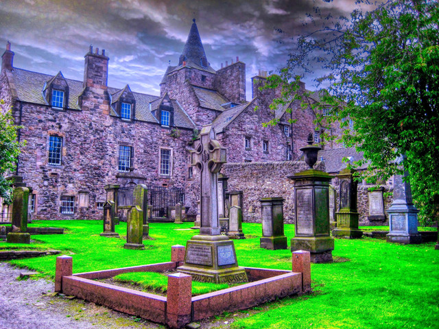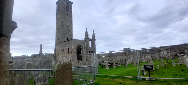 The silently watchful Ecclesiastical tower in the grounds of St Andrews Cathedral, with the cemetary nestled below.Related content