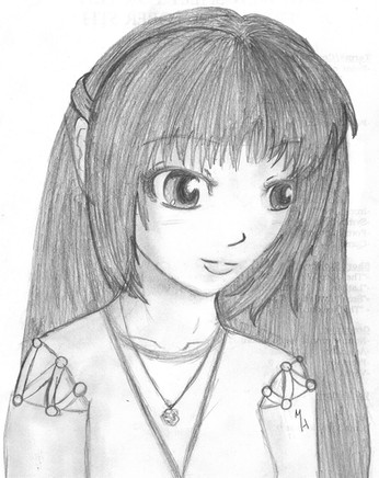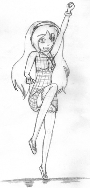Messing around on MS Paint. Drawn entirely on the program, using the Polygon Tool and the Circle tool. Zoomed in and touched thing up with the paintbrush, used the Text Tool to write her name.I guess this is my rough idea for a character I want to use, though I might change her name to Maria. Because I was listening to the song "Maria" by Blondie while I was doing this. Over and over.