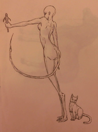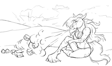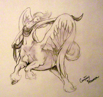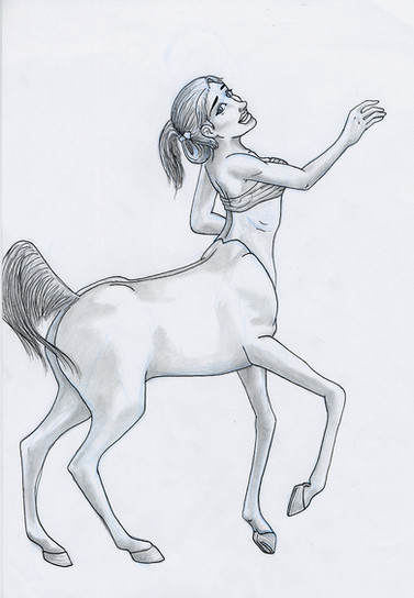 A pen drawing of a rearing female centaur filly.Related content