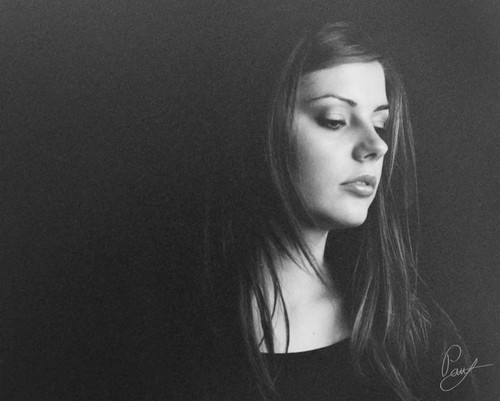 i like the lighting on this one, but i think if you used a hair light to describe a bit of form at the back of her head, instead of letting it fall to black, it would have helped hold the image toghetera bit better.