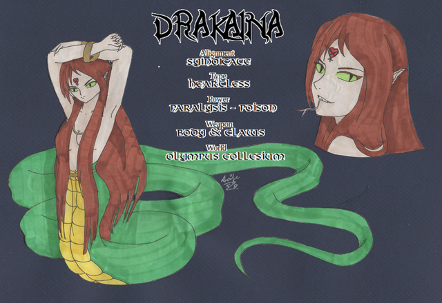 The character isn't new, but I had to pretend it was because we were suppose to be creating a masked character. Because of this, I faked some pre-sketches, not because I had to, but maybe I would be able to actually make a new character. Well, that didn't happen. I couldn't stare at centipedes that long and I thought the harpy form looked too much like the Falcon transformation in Mabinogi (which is where this character was originally for.)
