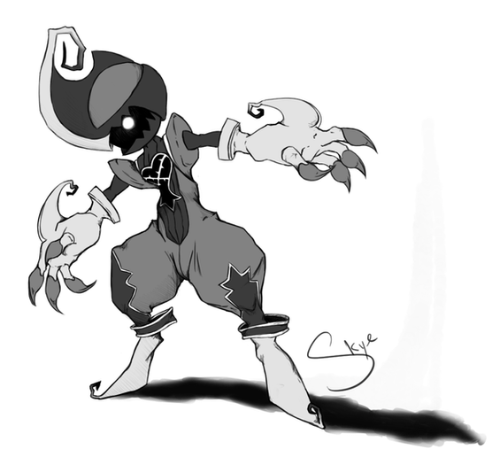 J'ai eu l'idée de faire mes propres (plus ou moins) design de heartless pour un de mes forums RP, et me suis inspirée d'un dessin de Gad Guard que j'avais vu juste avant, et plus qu'inspirée appremment ^^' Enfin bref, c'est un dessin fait au crayon HB, et colo sous Toshop comme d'hab.